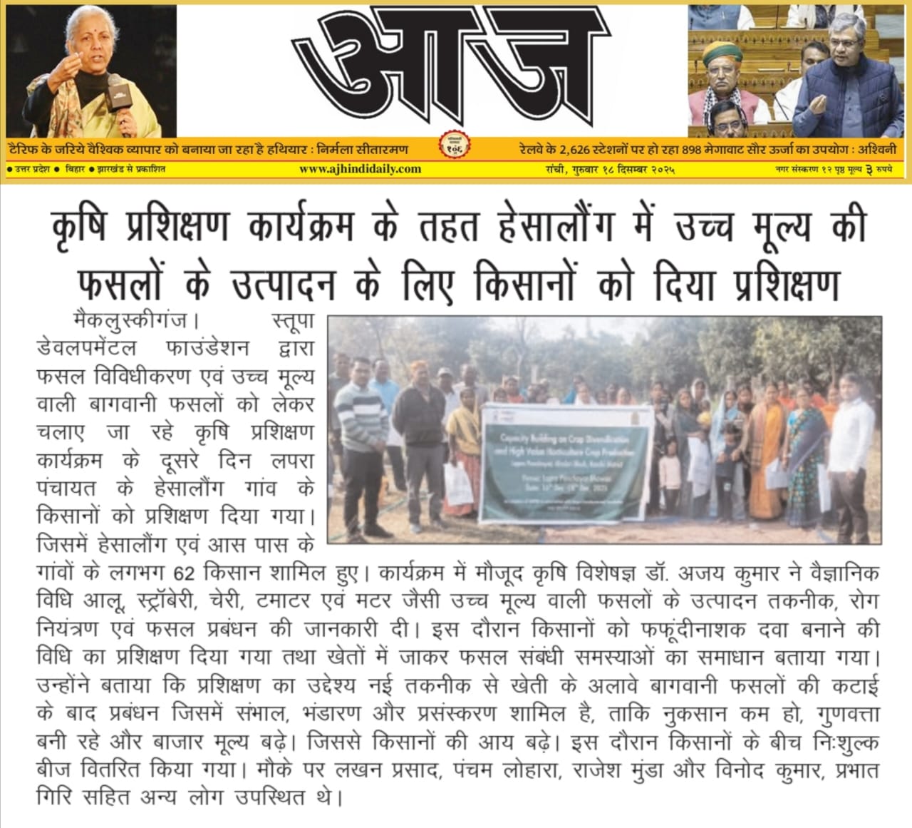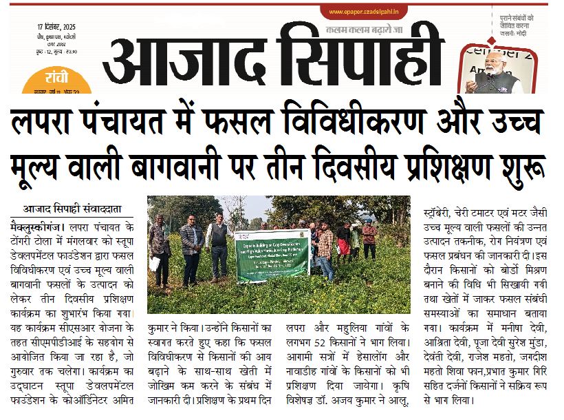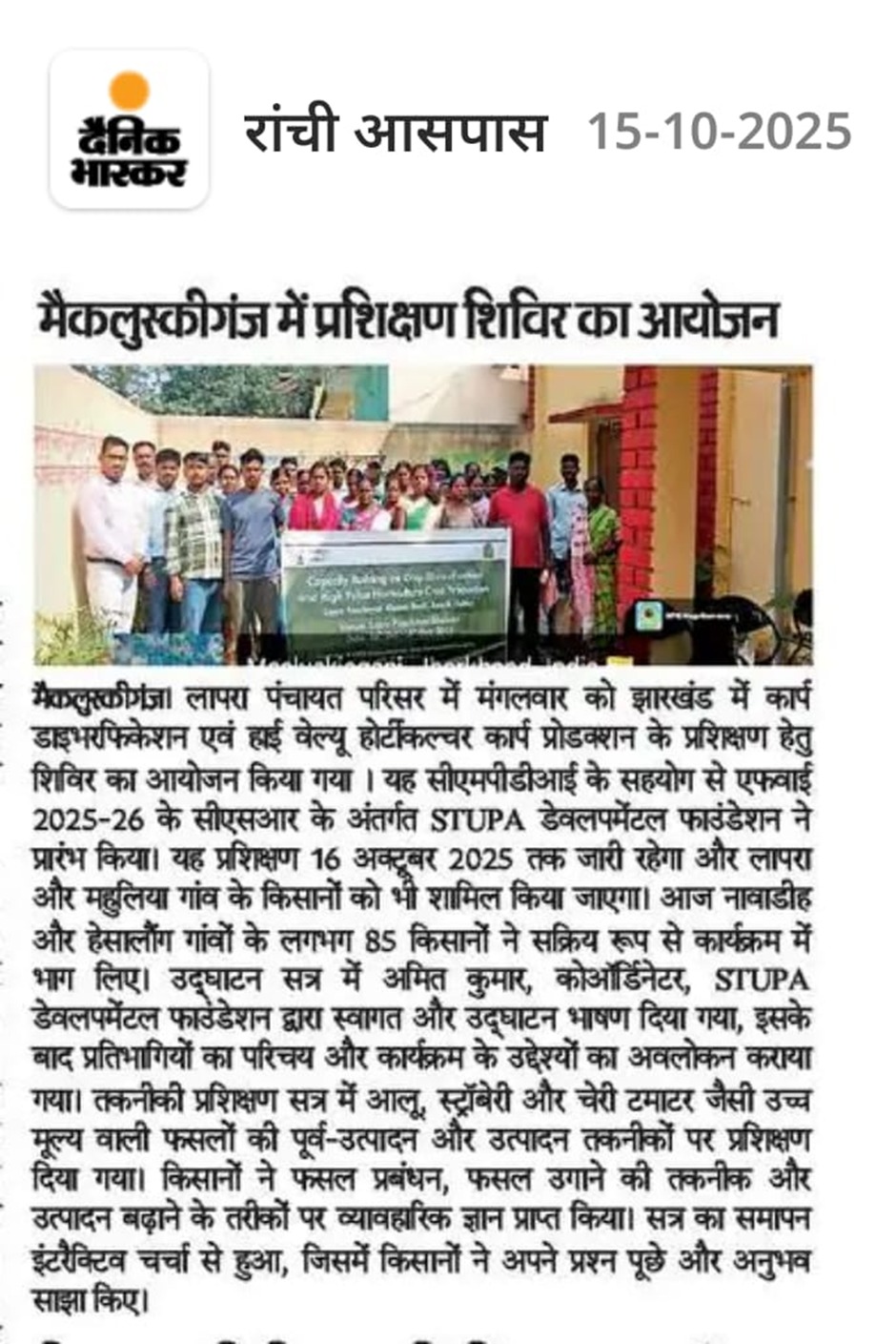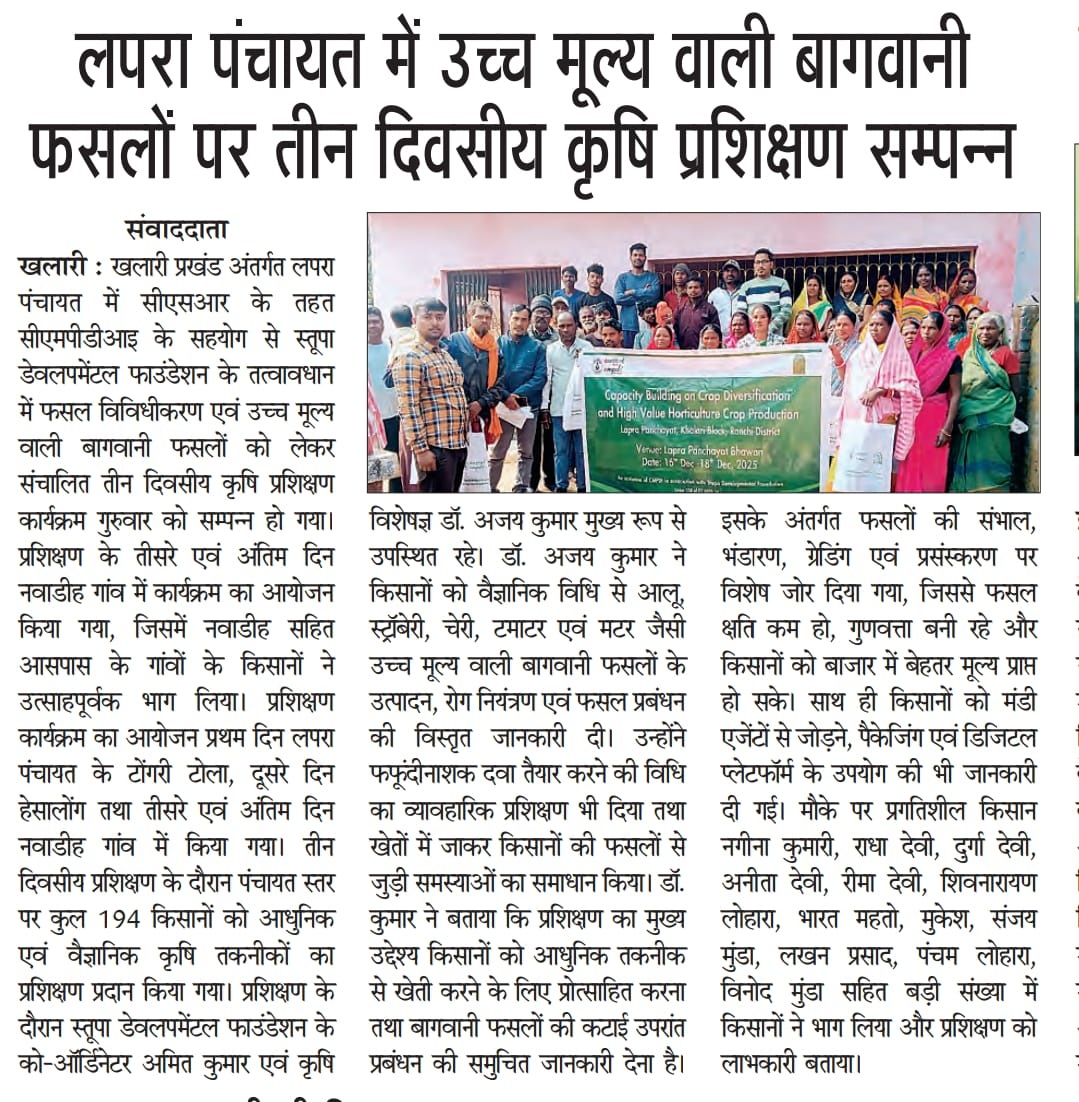 Capacity Building on Crop Diversification and High Value Horticulture Crop Production - Lapra Panchayat, Khalari Block, Ranchi District, Jharkhand for FY 2025-26 through CMPDI.
